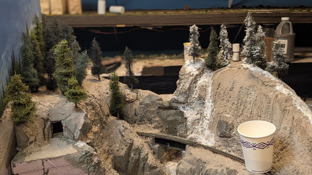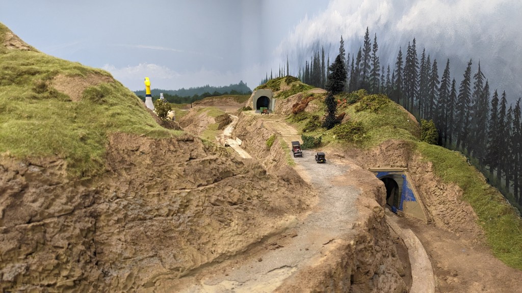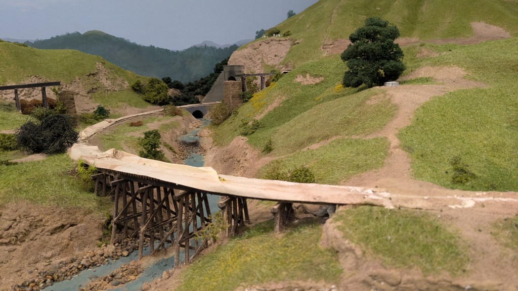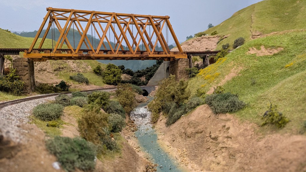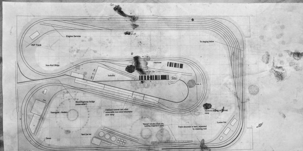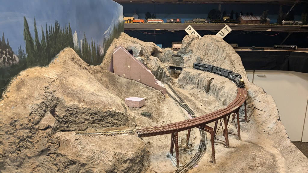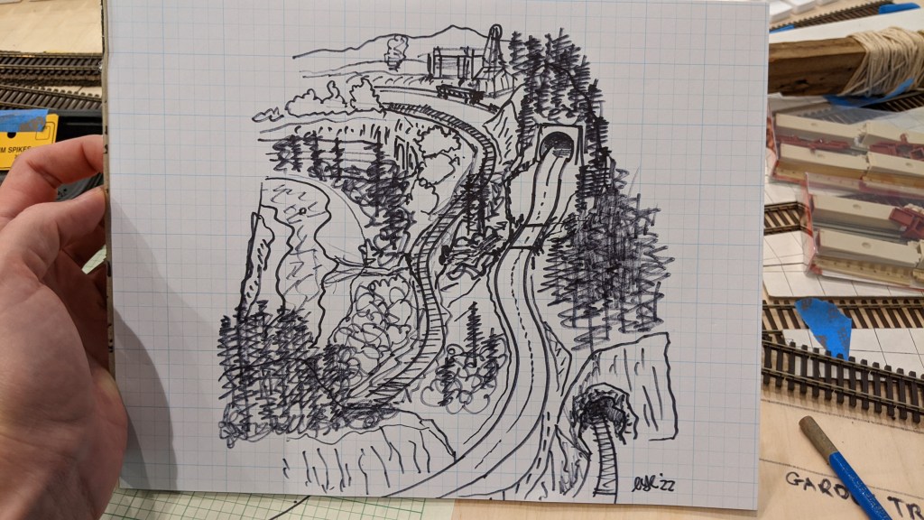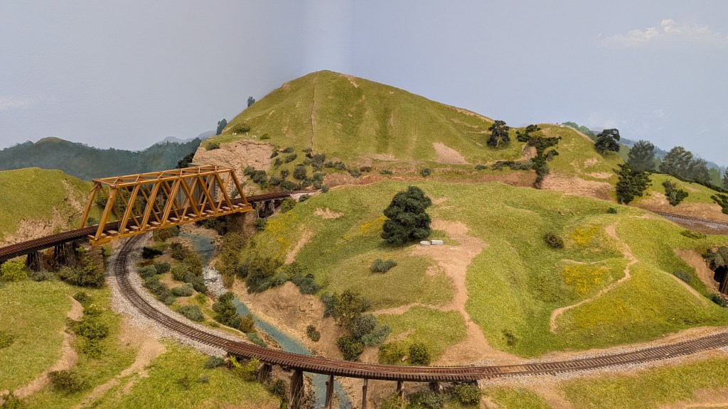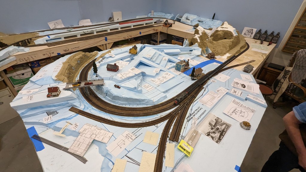 He had his double car garage layout designed by Byron Henderson, who filled it to the brim with as much hidden track as there was track above the layout. My goal was to rationalize that amount of track and balance it out with beautiful scenery familiar to most bay area railfans.
