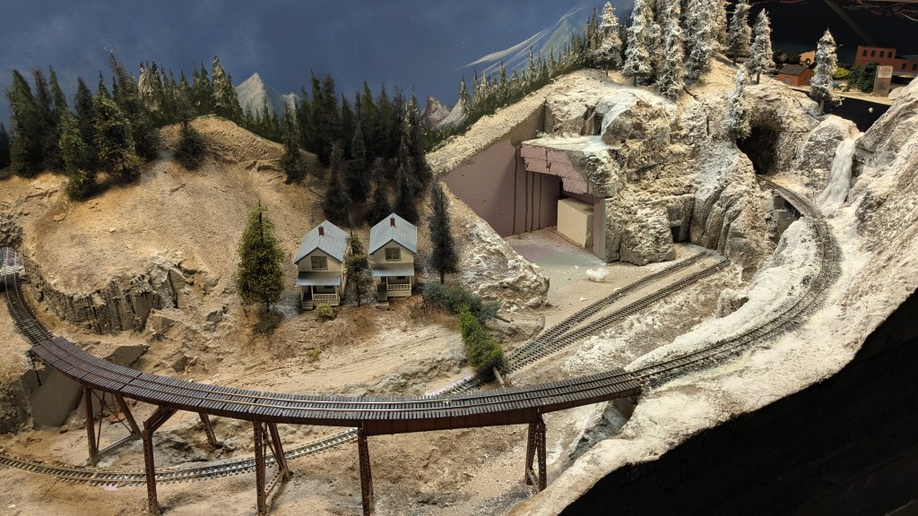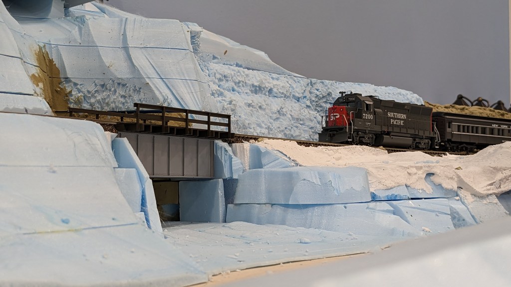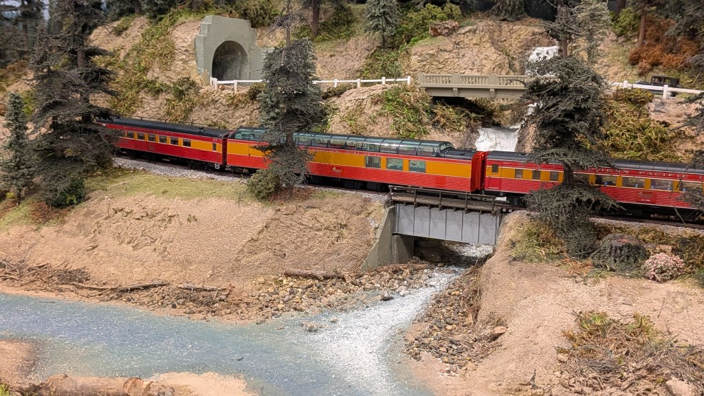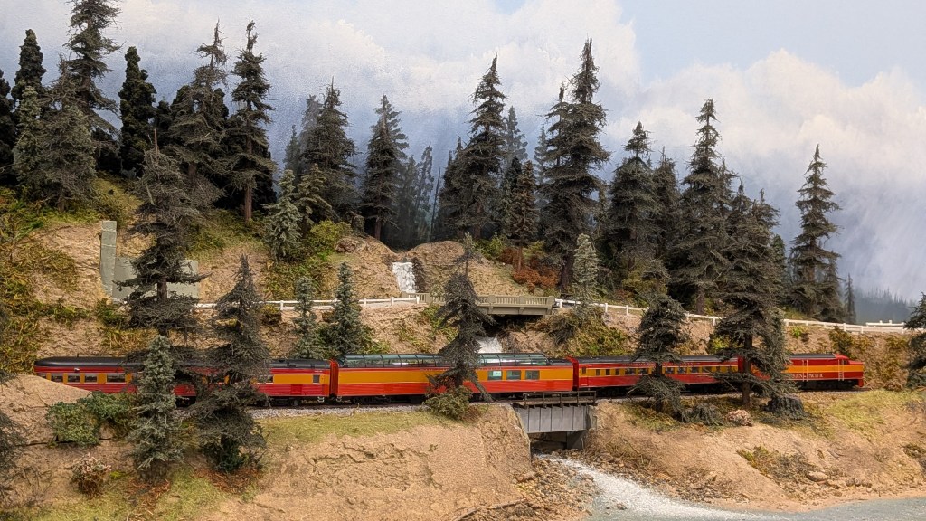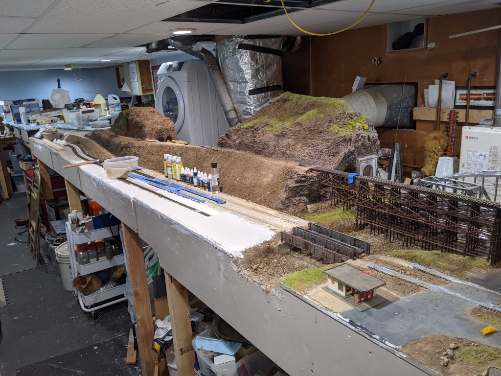 The SP and NWP is a major influence in capturing this evocative region, except this mainline is double tracked for fun operations. Like the NWP, it clings to cliffsides and charges over gorges on dramatic bridges the client built himself. It also runs along the coast of a bay for a bit at the base of some dramatic bluffs. A large town similar to Eureka is at the other end of the layout, which will have a functional interurban running to a Brewery module under wire.