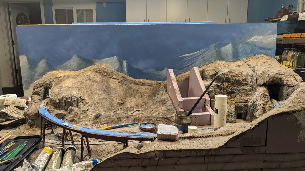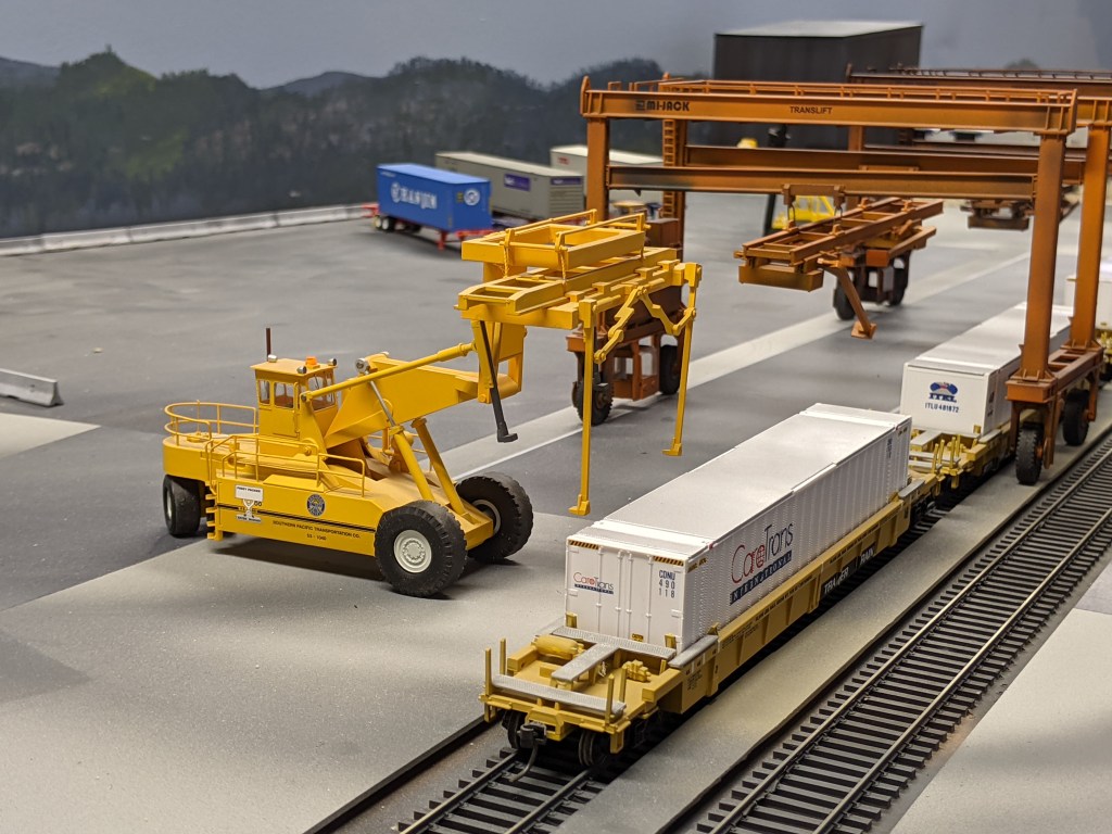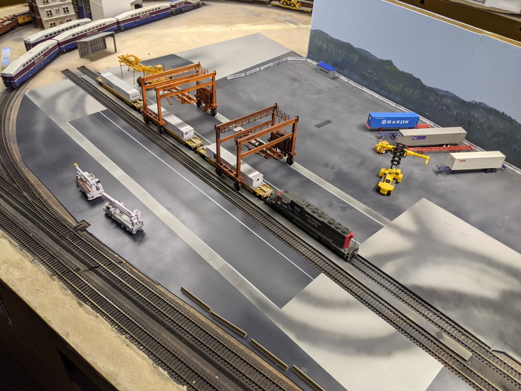 I began working in West Oakland, building an impressive intermodal facility very similar to the Howard terminal back when it was rail served. I also painted a massive, accurate backdrop of the Oakland hills matched precisely with the prototype.